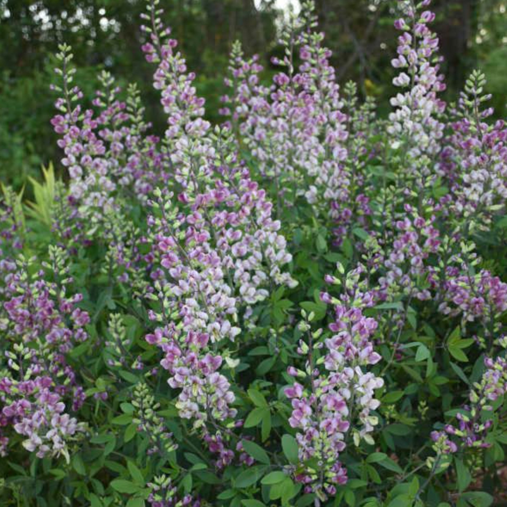 Plum Rosey is an elegant bi-colored baptisia. The newest blooms start a rosy mauve color that mellows into white as the blooms mature, making it a true bi-color. Once established, baptisia is very hardy, drought tolerant, and can handle a variety of soil types.